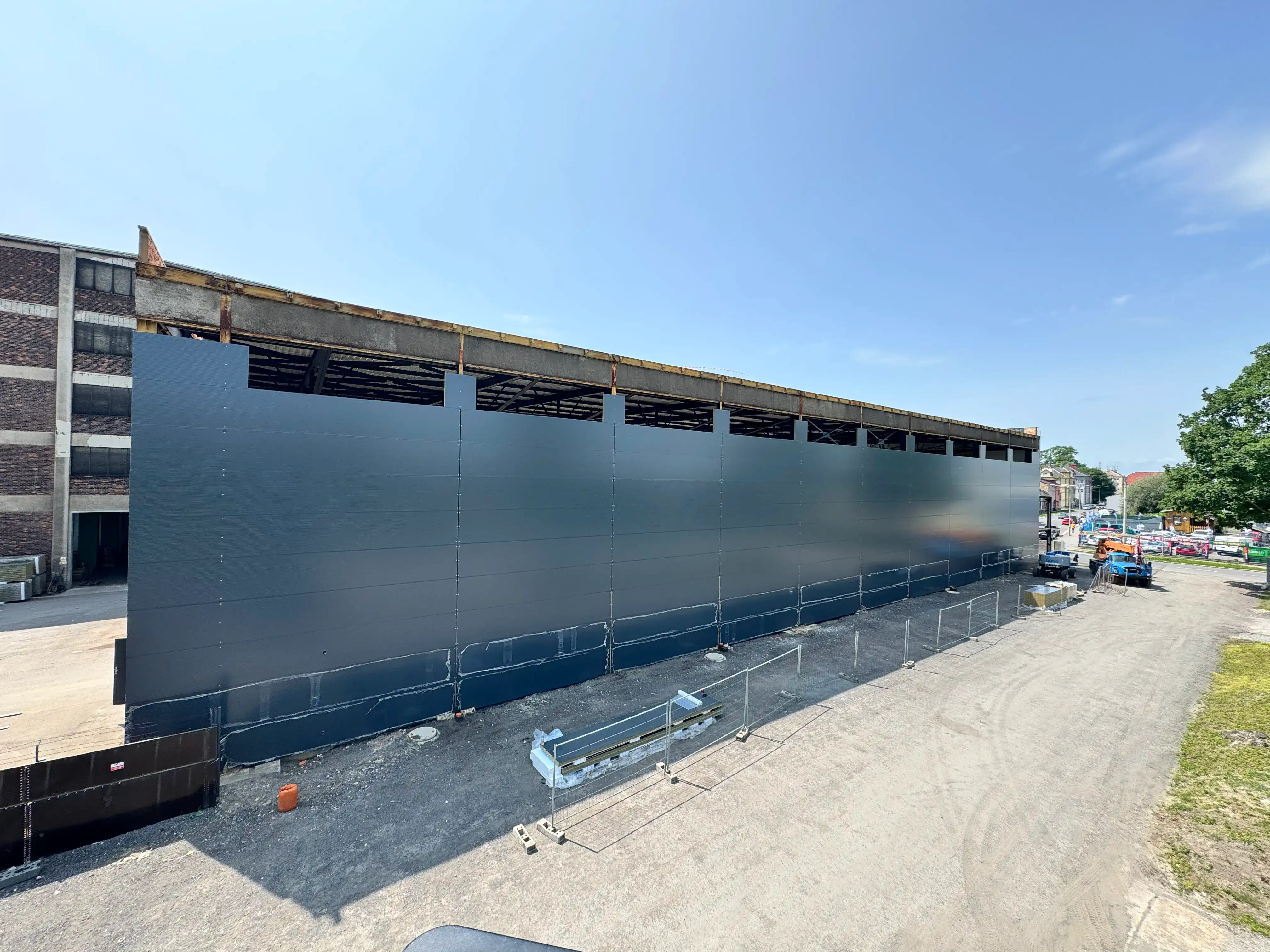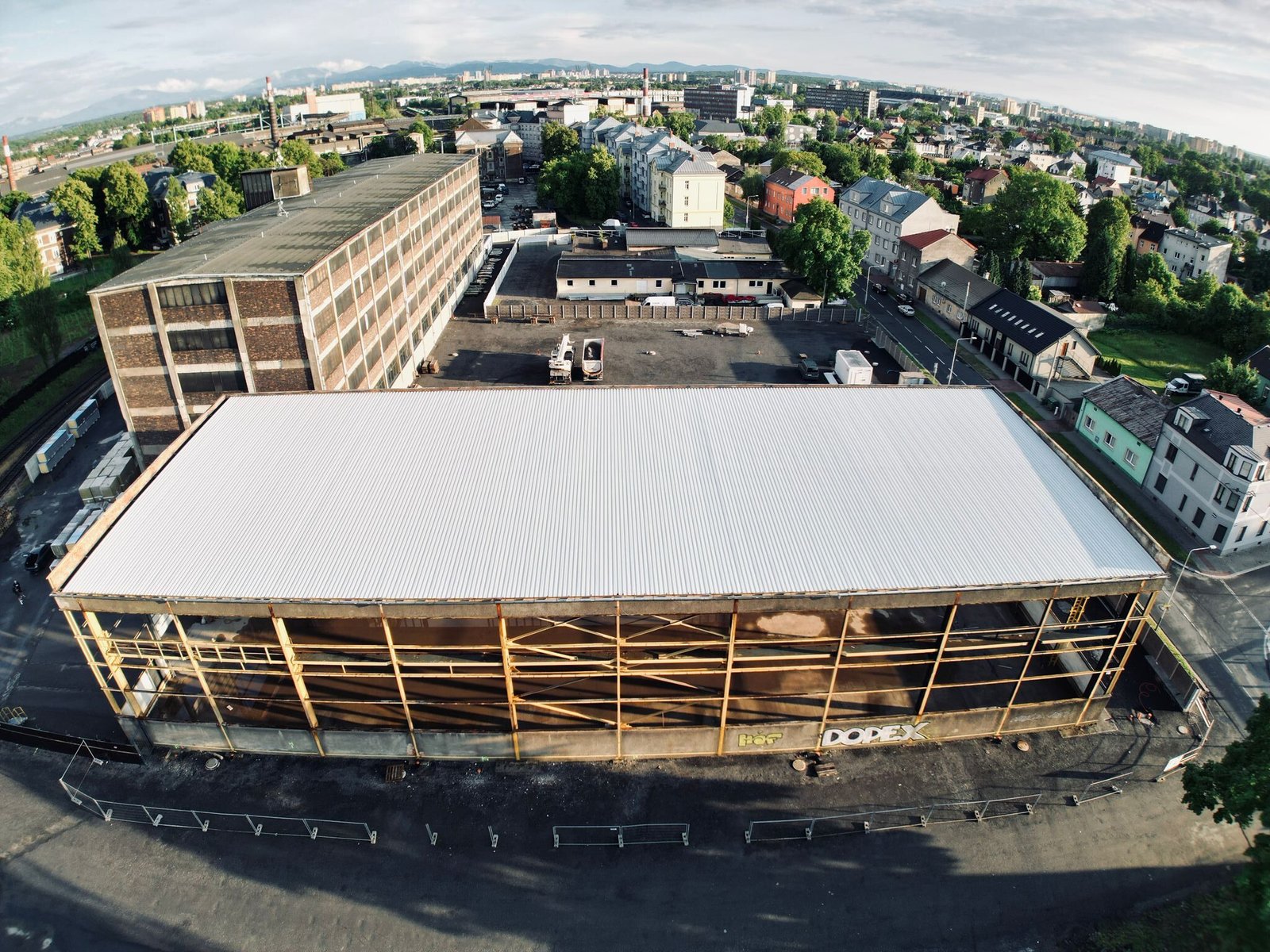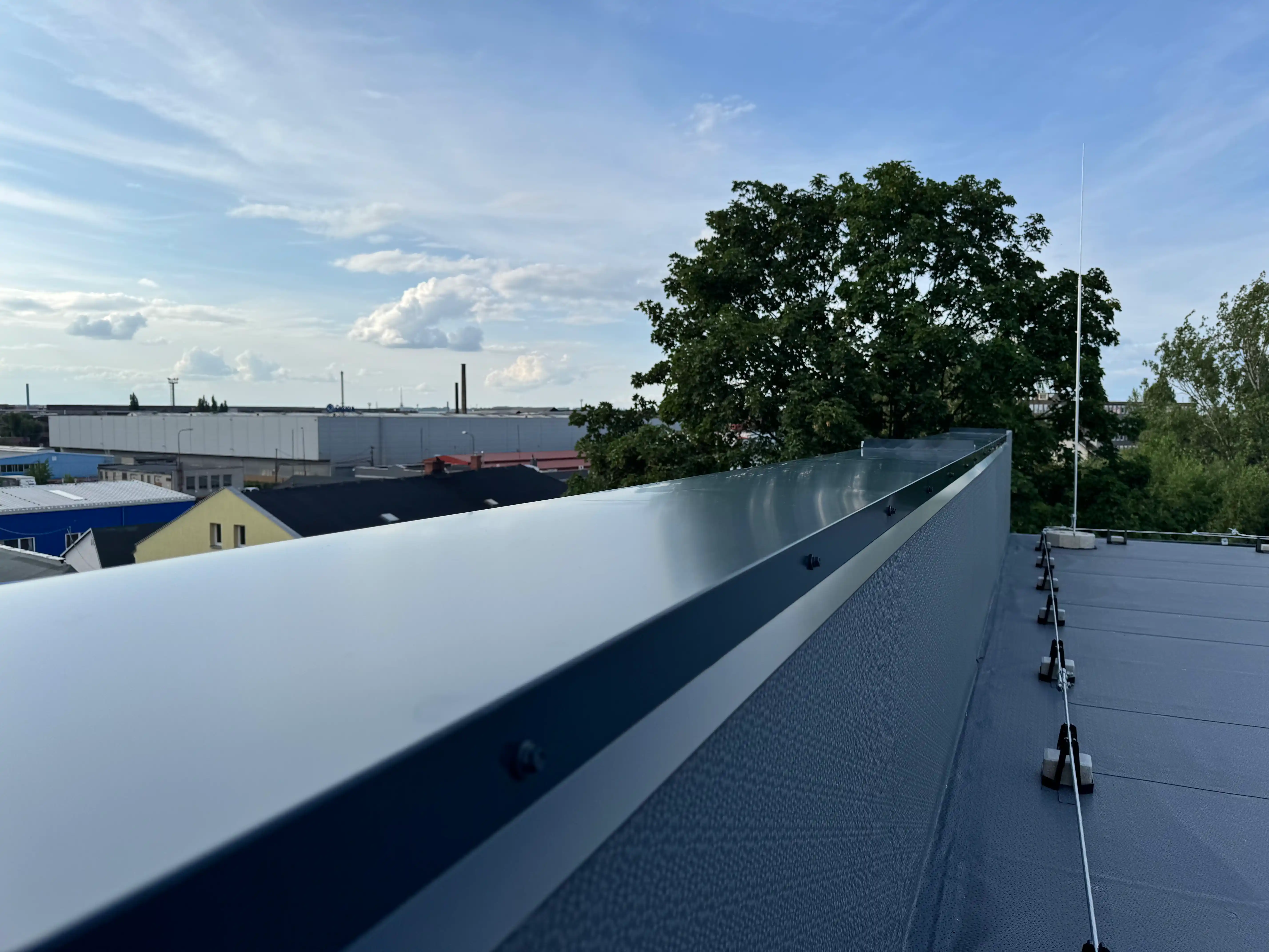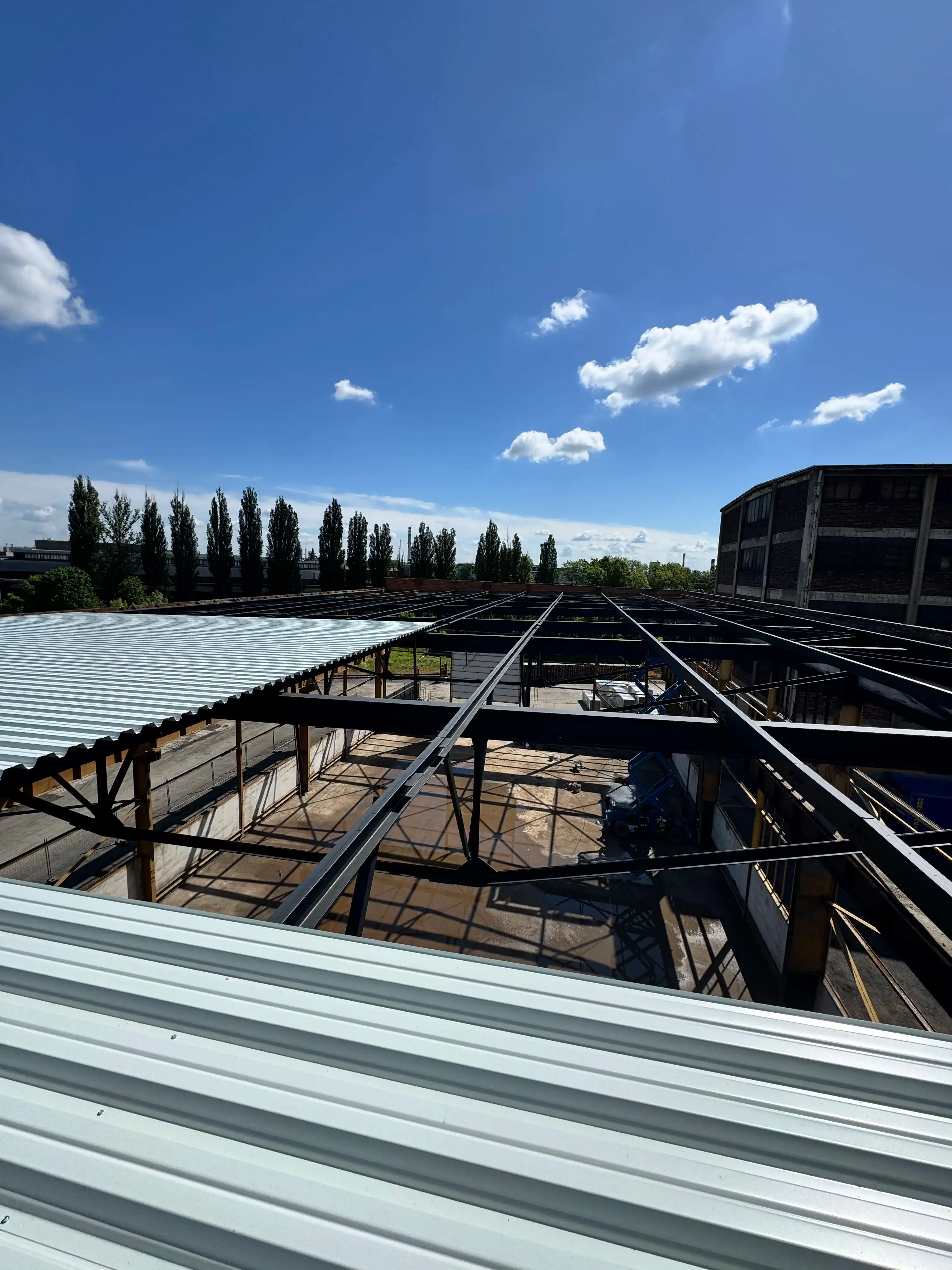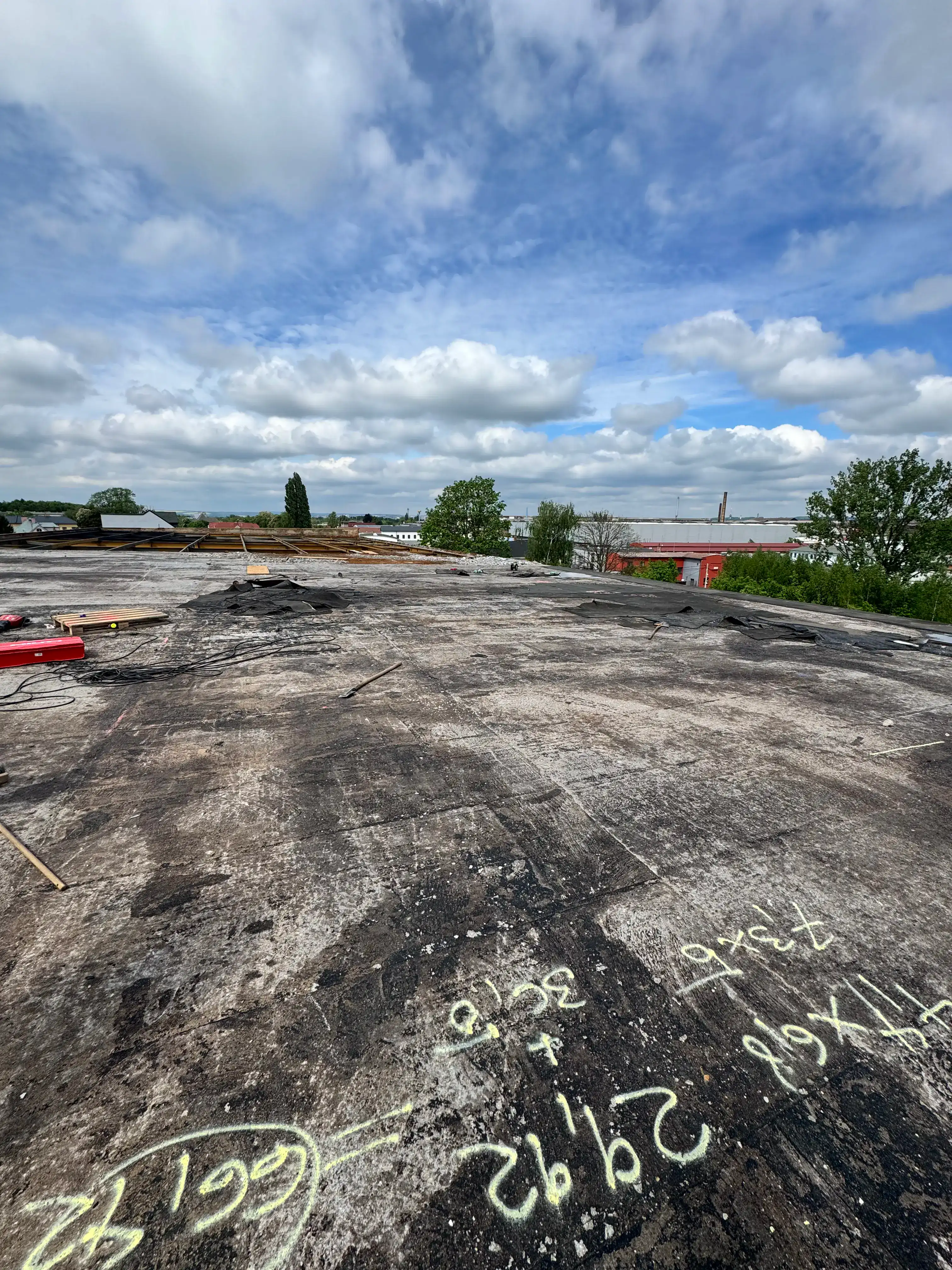 Na této zakázce jsme realizovali montáž trapézových plechů na střešním plášti a kompletní opláštění objektu. Součástí prací byla nejprve demontáž původní skladby, kde se nacházela betonová konstrukce a trapézový plech. Původní materiál byl kompletně odstraněn a následně jsme provedli montáž nového trapézového plechu. Dále jsme zajistili opláštění budovy sendvičovými panely, které dodávají objektu moderní vzhled a zároveň zajišťují kvalitní tepelněizolační vlastnosti. Realizace zahrnovala také kompletní montáž klempířských prvků, včetně lemování, oplechování detailů a ukončovacích prvků, které zabezpečují těsnost a technickou správnost provedení. Výsledkem je kvalitně provedené opláštění objektu s důrazem na detail, funkčnost a dlouhou životnost.