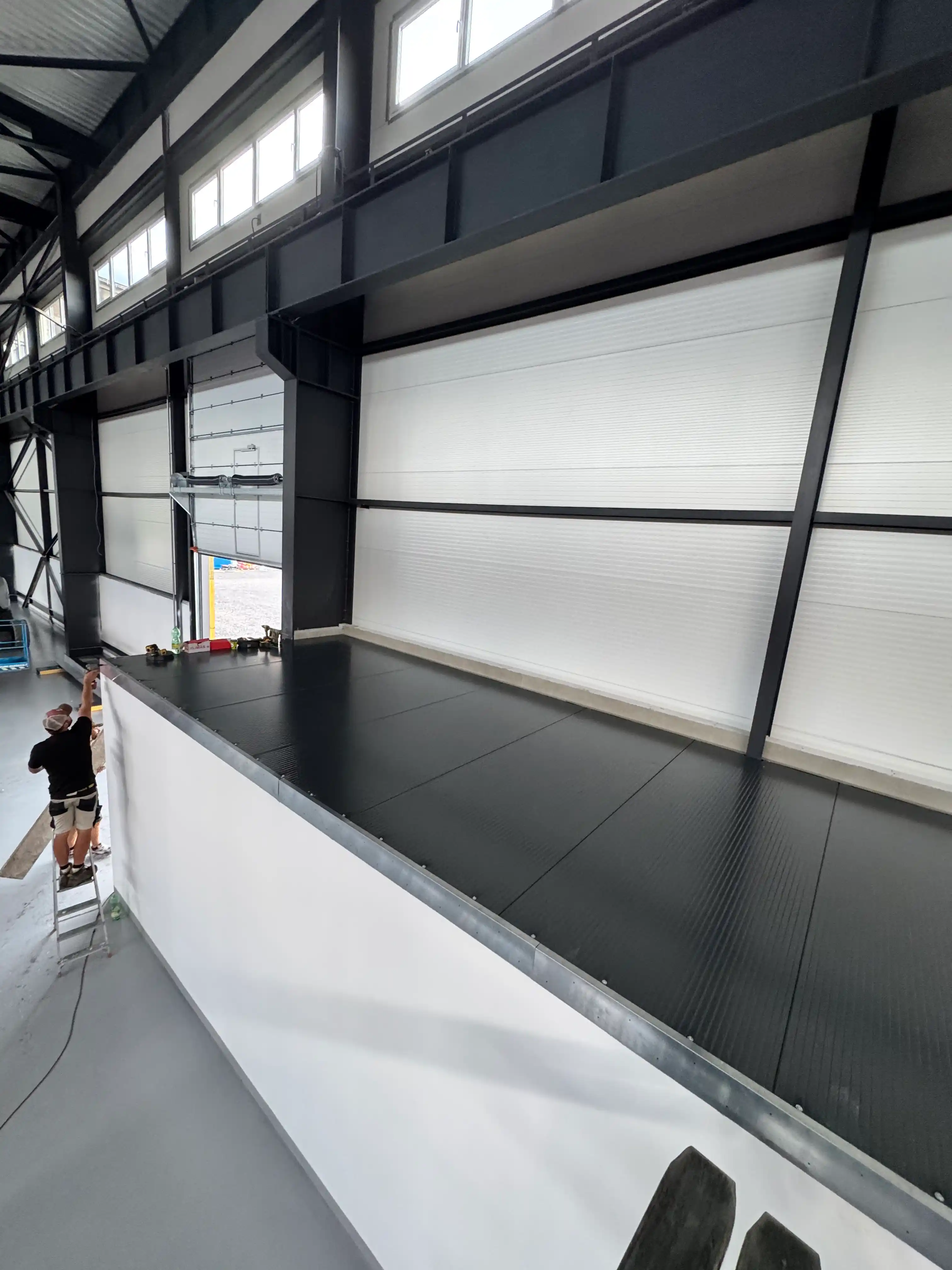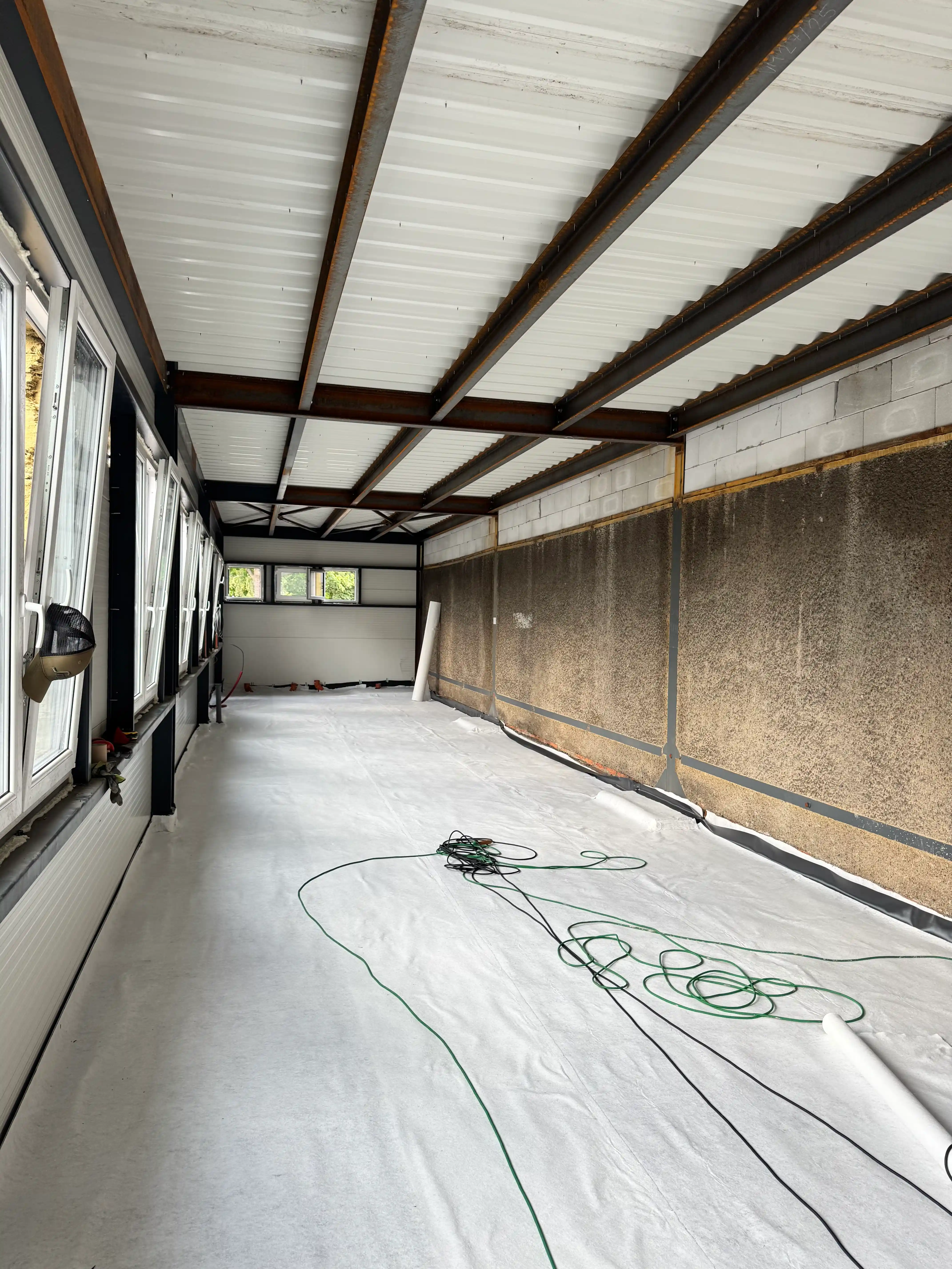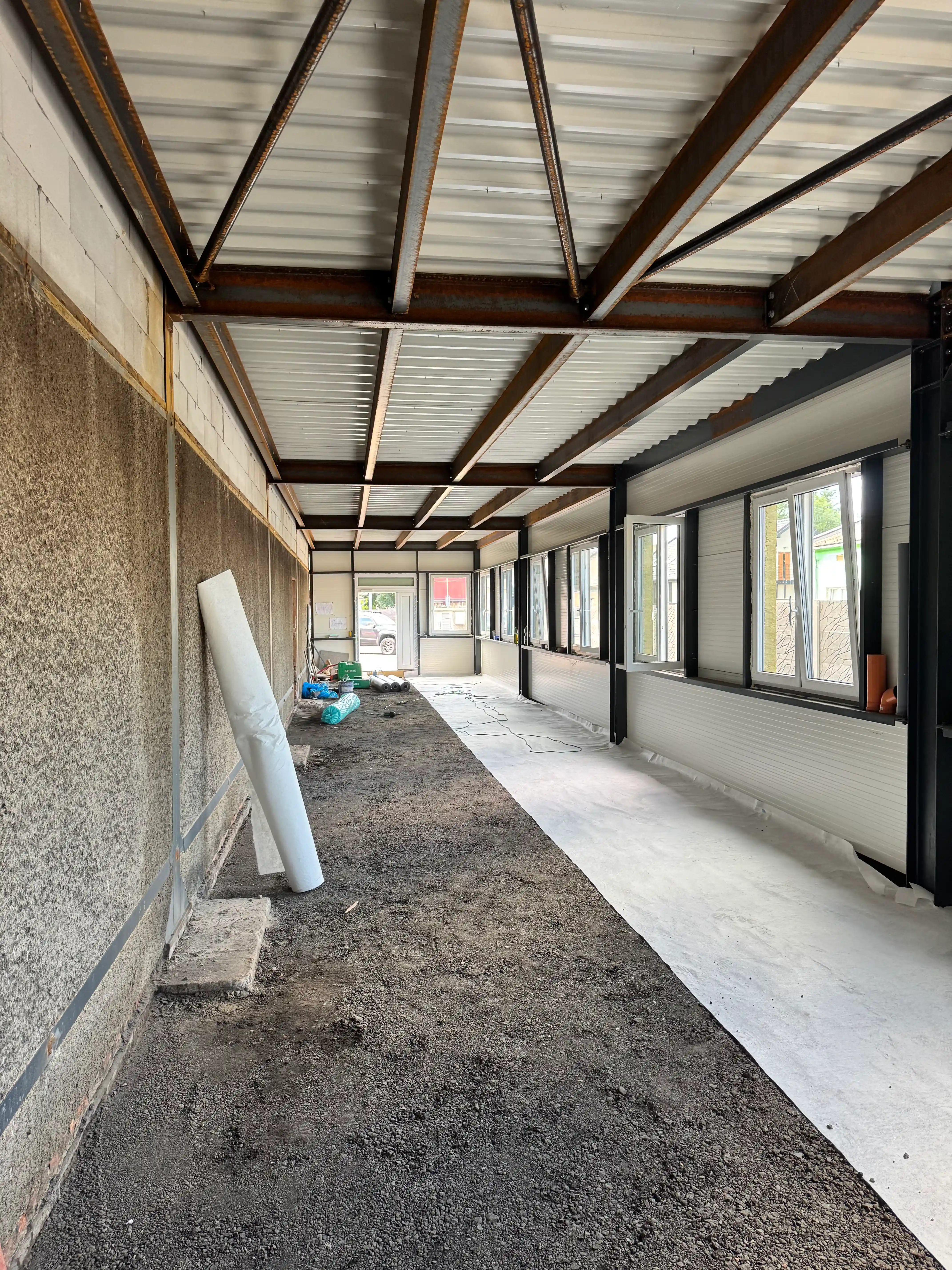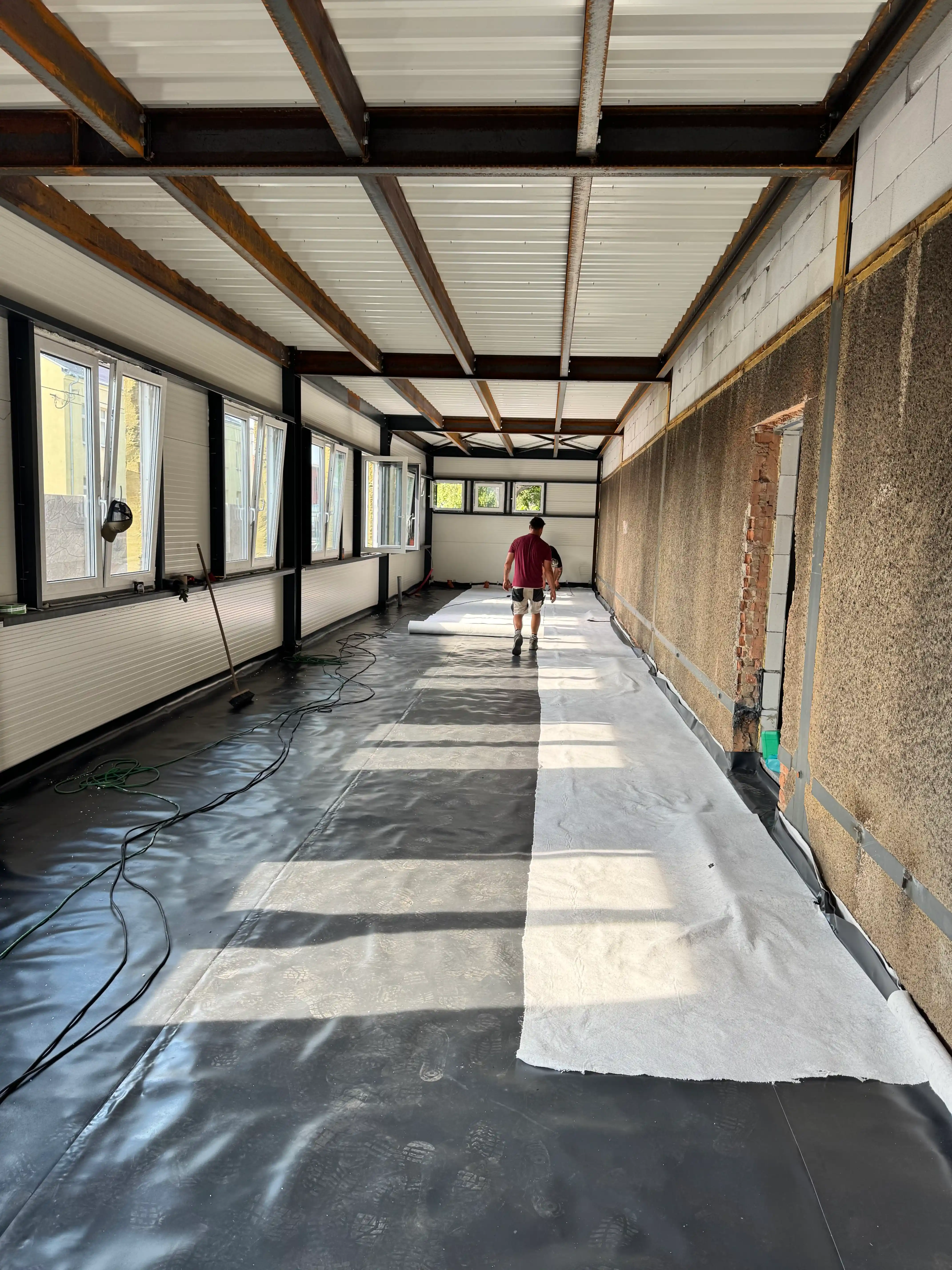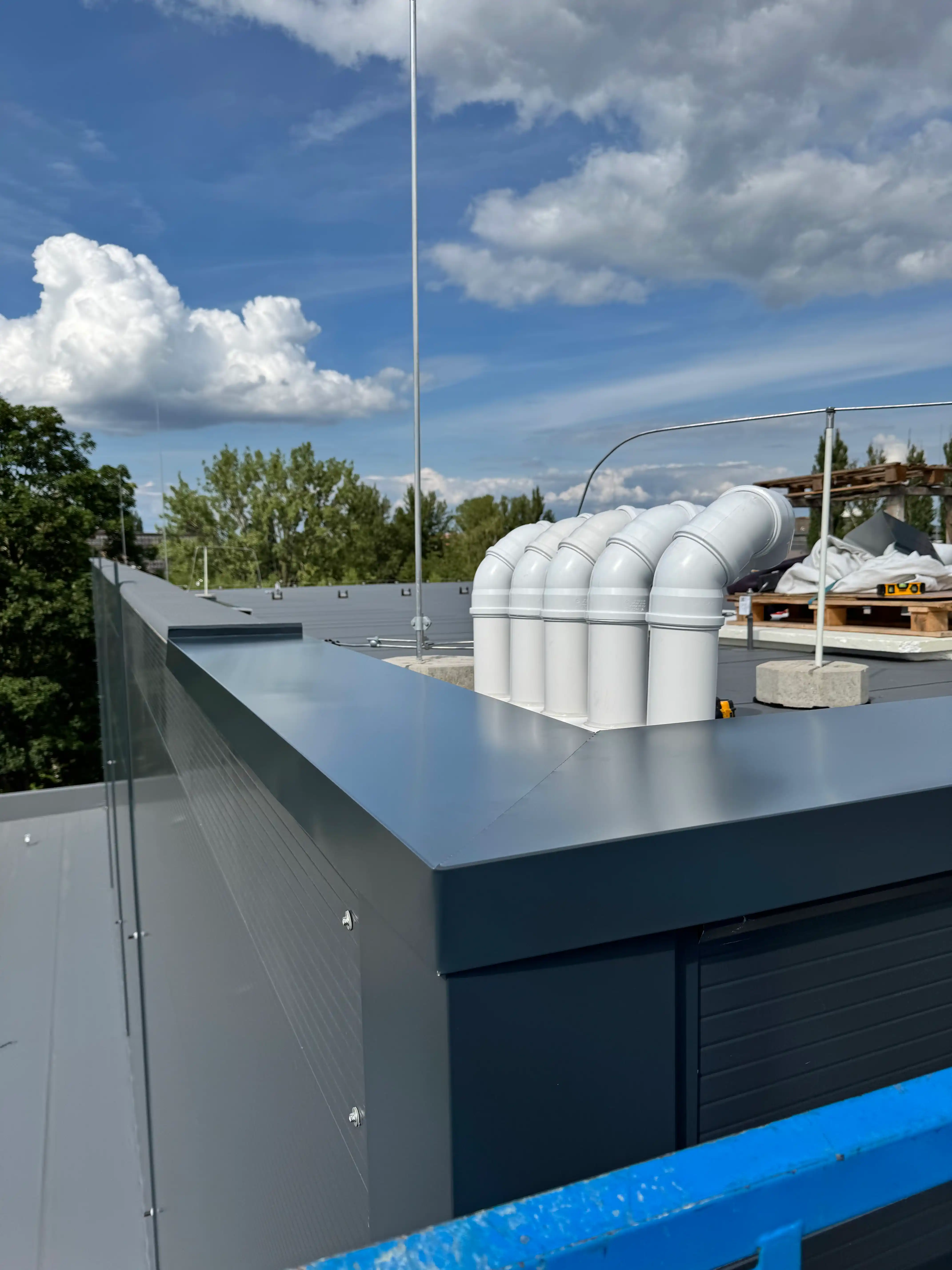 Na této zakázce jsme realizovali montáž trapézových plechů na střešním plášti a kompletní opláštění objektu. Součástí prací byla nejprve demontáž původní skladby, kde se nacházela betonová konstrukce a trapézový plech. Původní materiál byl kompletně odstraněn a následně jsme provedli montáž nového trapézového plechu. Dále jsme zajistili opláštění budovy sendvičovými panely, které dodávají objektu moderní vzhled a zároveň zajišťují kvalitní tepelněizolační vlastnosti. Realizace zahrnovala také kompletní montáž klempířských prvků, včetně lemování, oplechování detailů a ukončovacích prvků, které zabezpečují těsnost a technickou správnost provedení. Výsledkem je kvalitně provedené opláštění objektu s důrazem na detail, funkčnost a dlouhou životnost.