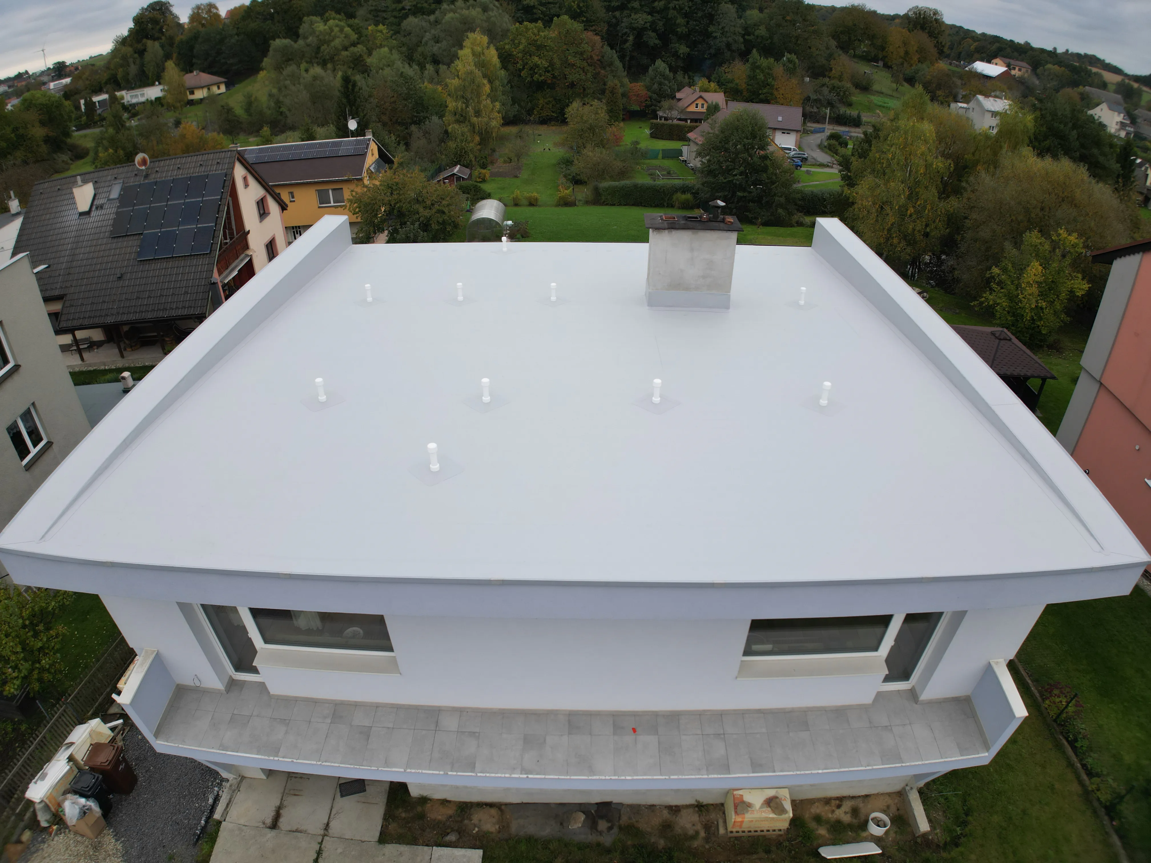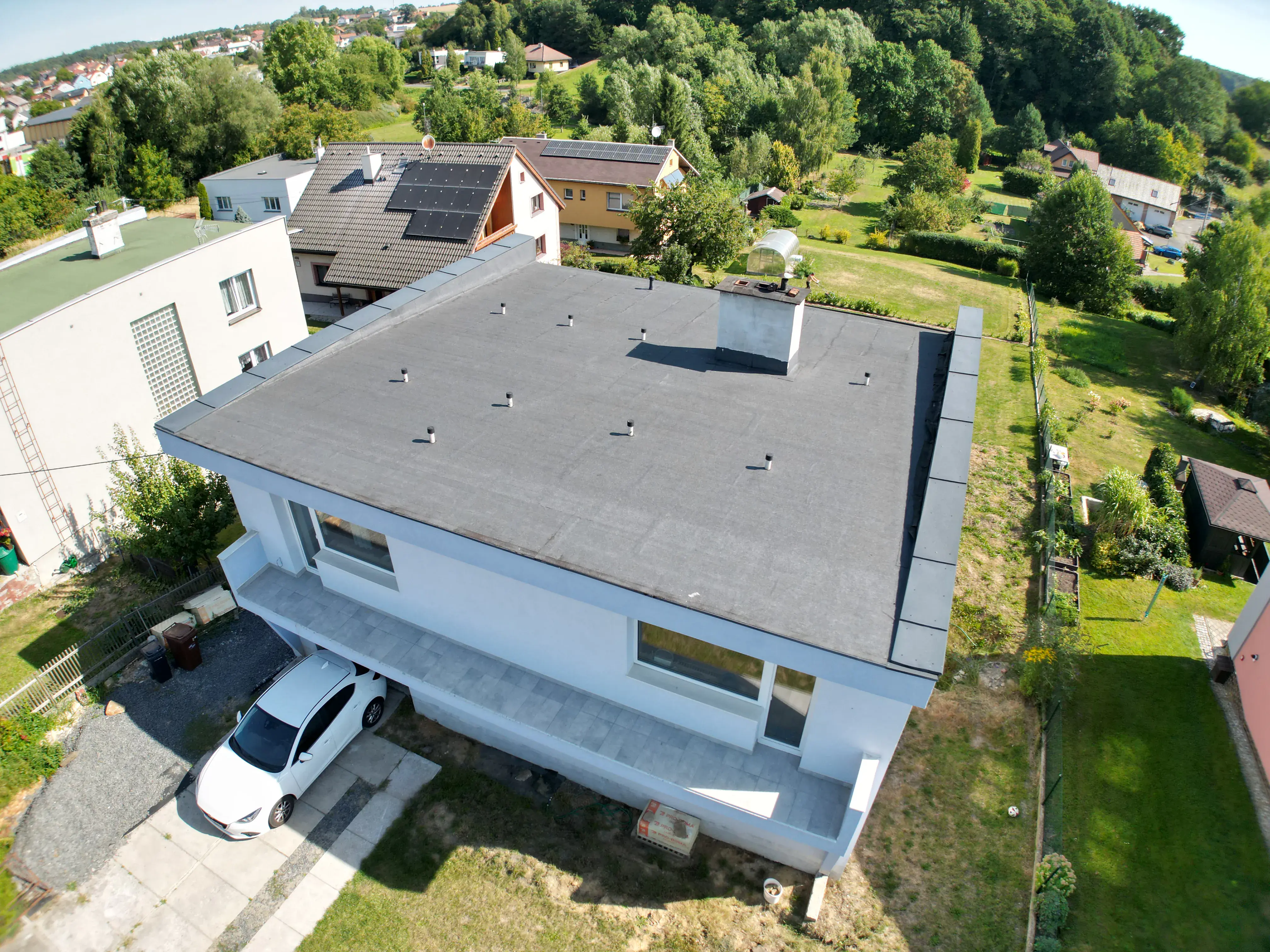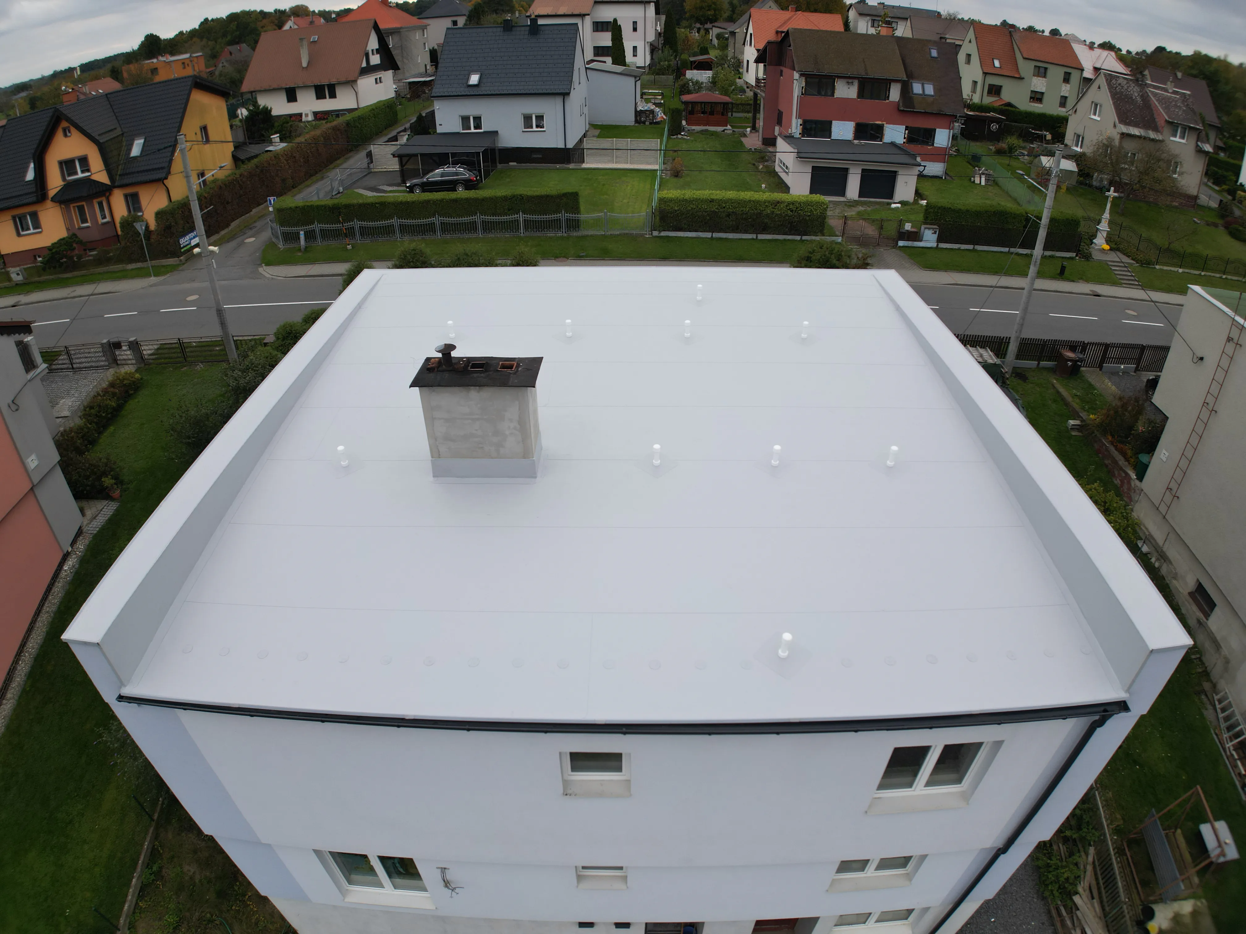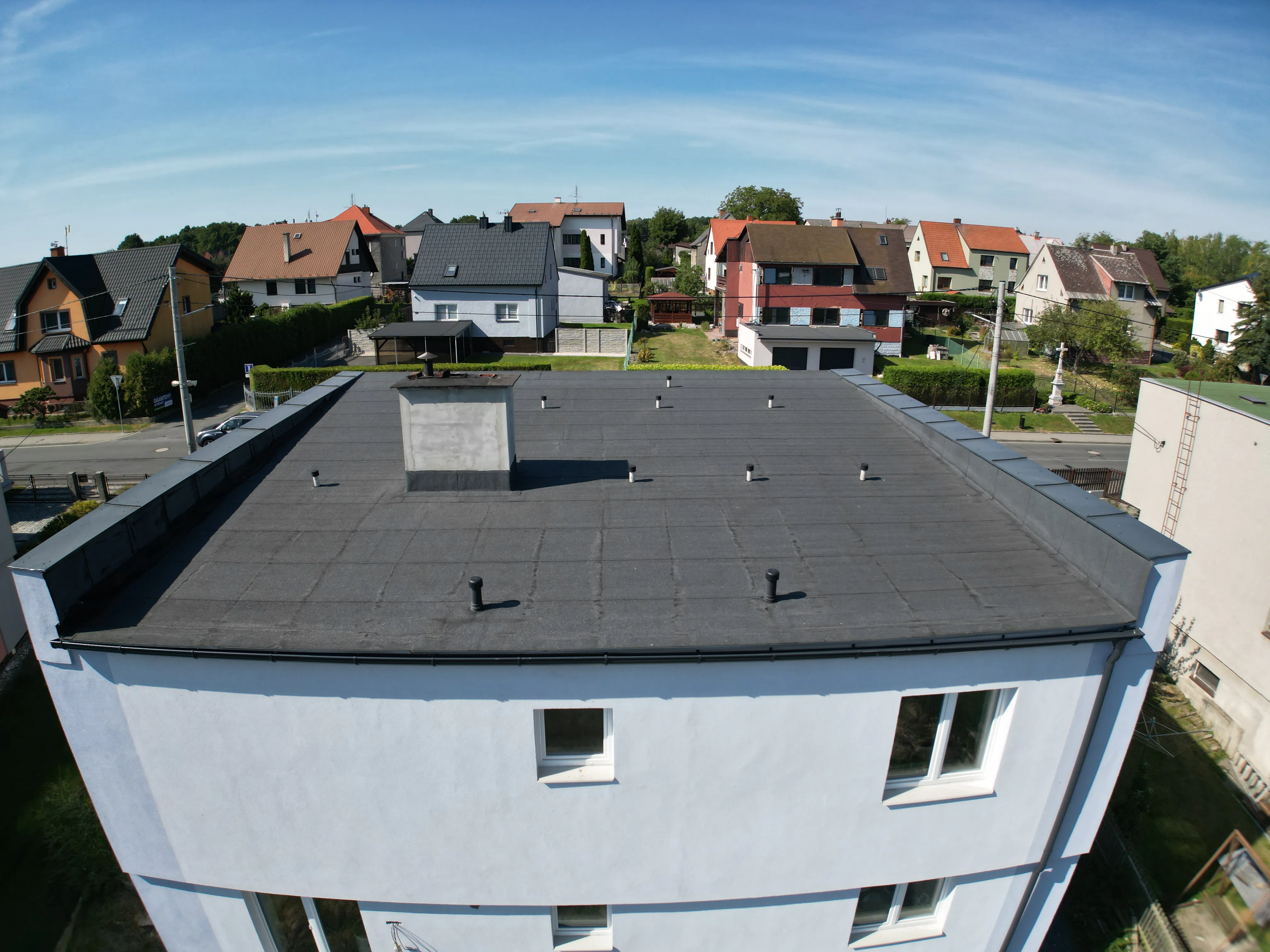 V rámci této zakázky proběhla kompletní výměna původní střešní krytiny. Jako nová krytina byla zvolena PVC střešní fólie, která nabízí vysokou životnost, odolnost vůči UV záření i povětrnostním vlivům. Střecha byla při zahájení prací v havarijním stavu – původní asfaltová lepenka byla poškozená, místy netěsná a do konstrukce zatékalo.